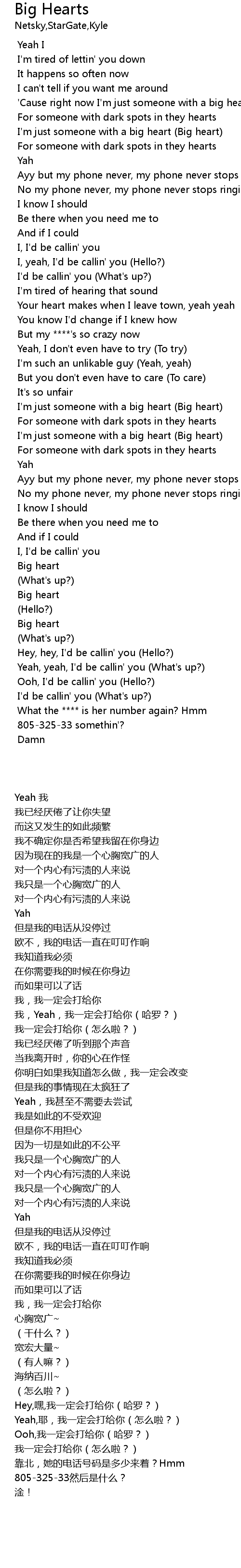 | [00:23.282] | 'Cause right now I'm just someone with a big heart (Big heart) |
