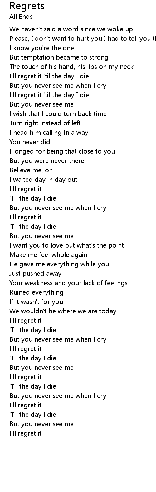 | I'll regret it 'til the day I die | |
