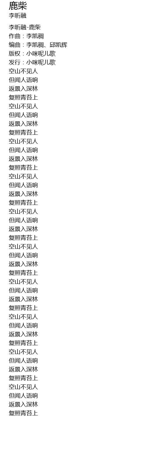 | [00:00.83] | 李昕融-鹿柴 |