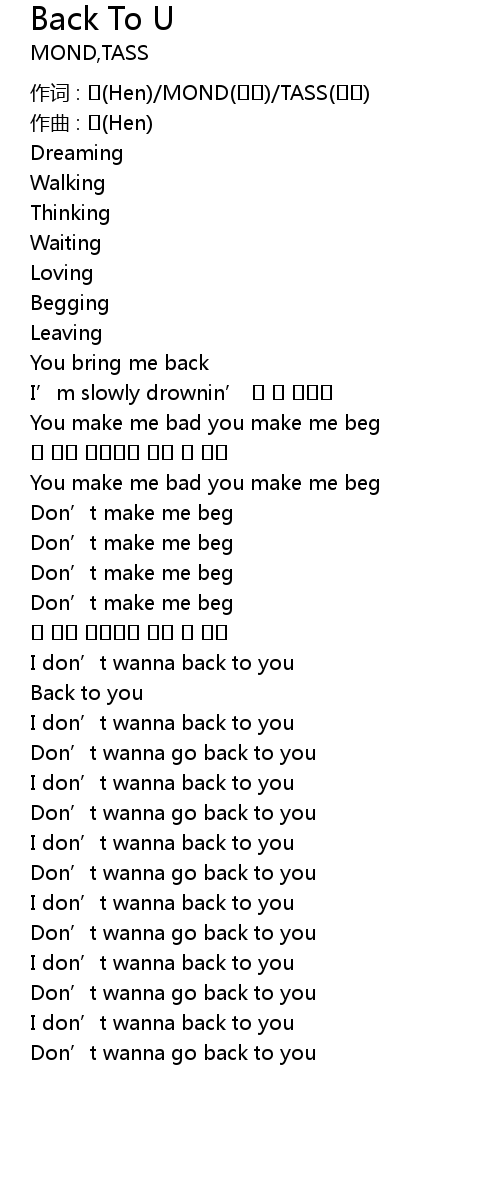 | I don’t wanna back to you | |
