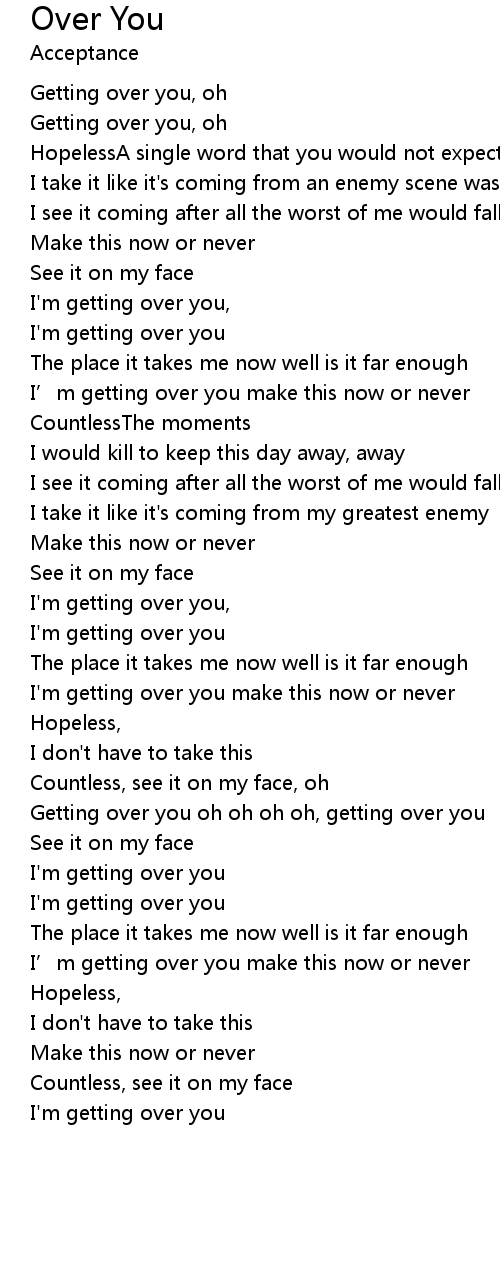 | I'm getting over you make this now or never | |