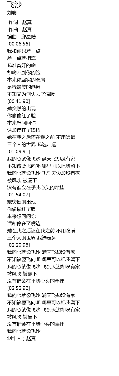 | [02:57.49] | 我的心就像飞沙 满天飞却没有家 |