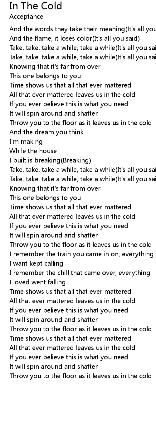 All that ever mattered leaves us in the cold |