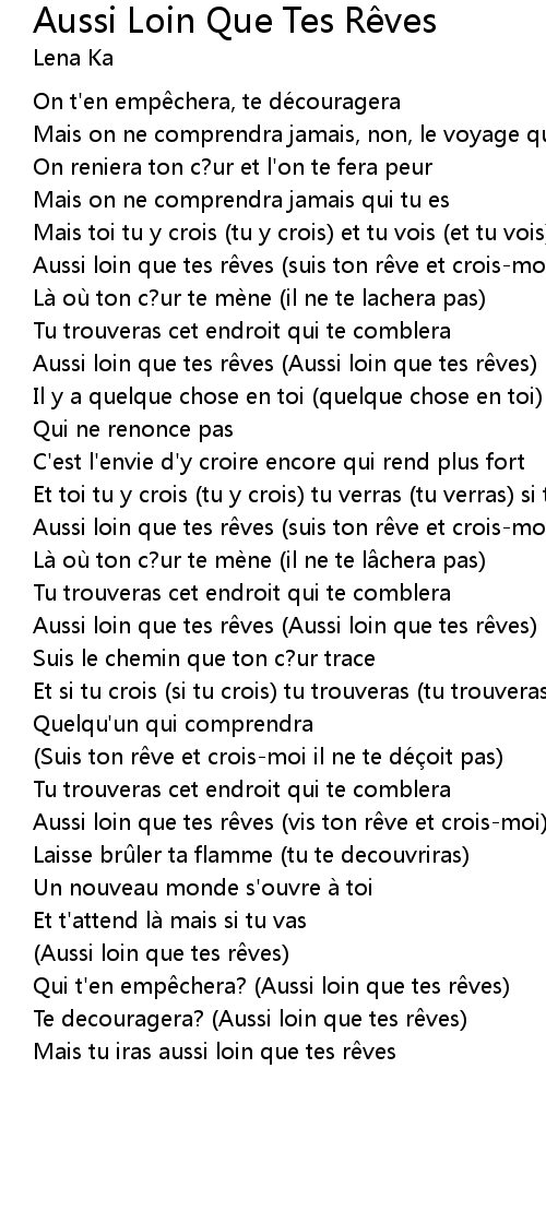 | Aussi loin que tes r ves Aussi loin que tes r ves | |