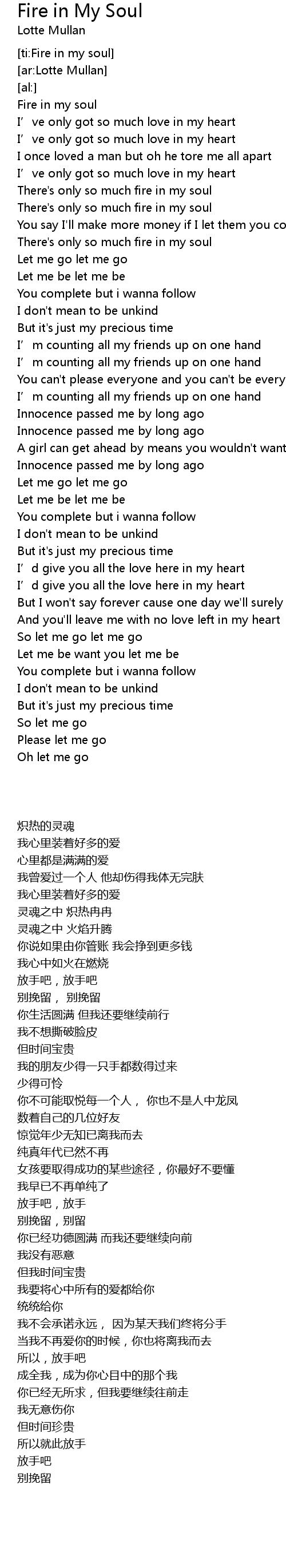 | [00:39.53] | There' s only so much fire in my soul |