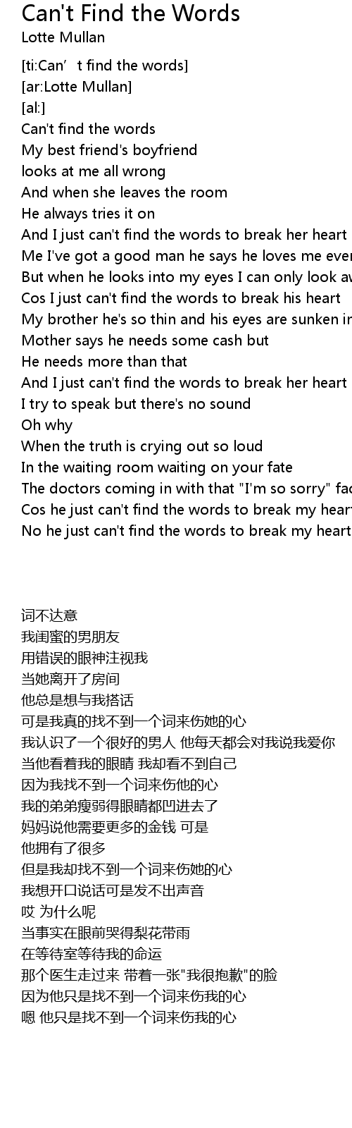 | [ti:Can’t find the words] | |