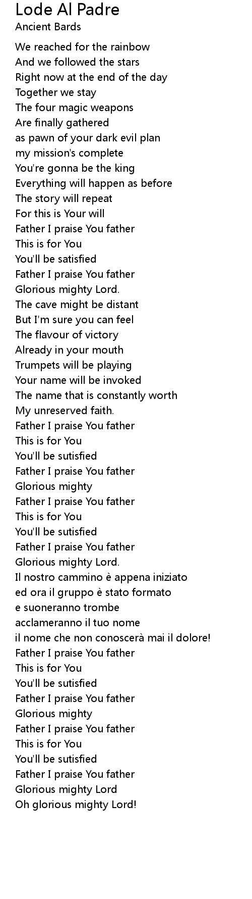 | Song | Lode Al Padre |