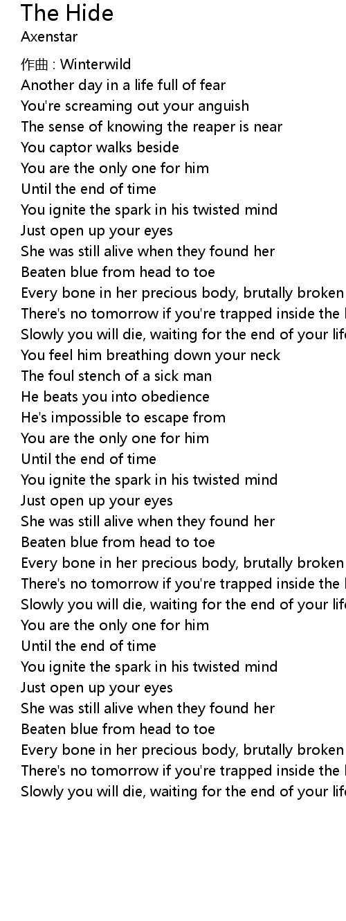 | Song | The Hide |