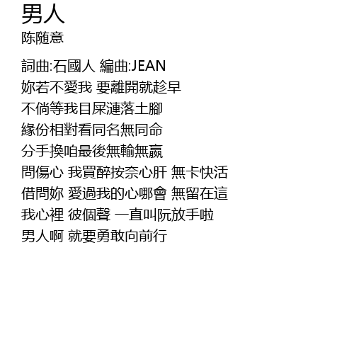 | 詞曲:石國人 編曲:JEAN | |