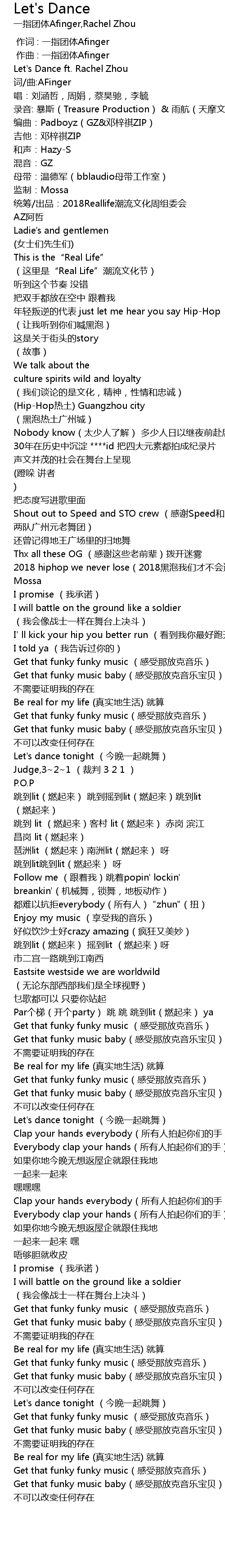 | [00:36.174] | Shout out to Speed and STO crew gǎn xiè Speed hé STO liǎng duì guǎng zhōu yuán lǎo wǔ tuán |
