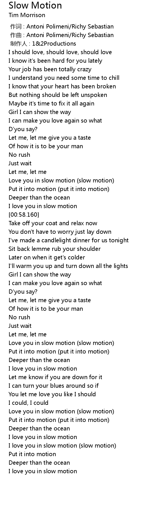 | [00:43.342] | Love you in slow motion slow motion |