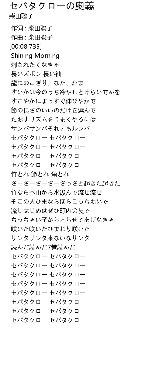 | [00:01.000] | 作曲 : 柴田聡子 |