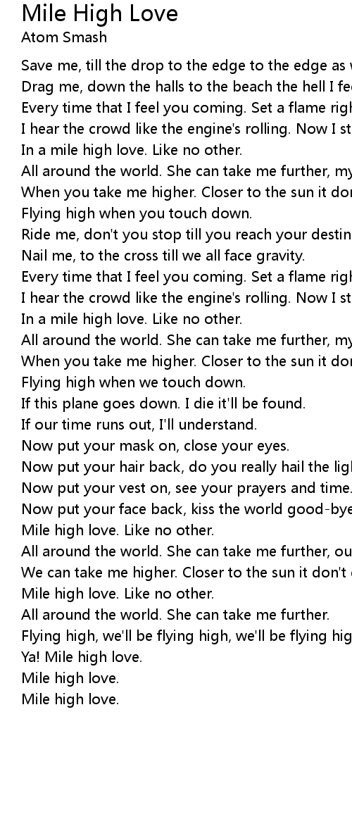 Flying high, we'll be flying high, we'll be flying high when we touch down. |