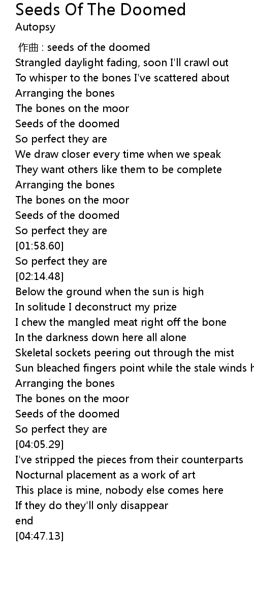 | [03:55.54] | Seeds of the doomed |