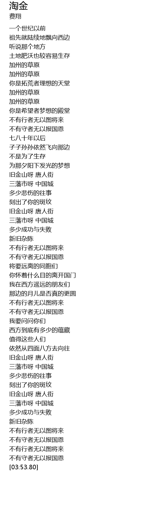 | [03:09.39] | 旧金山呀 唐人街 |