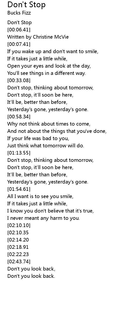 Don't stop, thinking about tomorrow, |