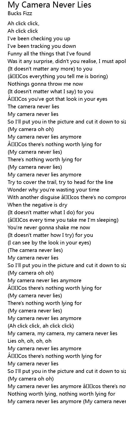 | Song | My Camera Never Lies |