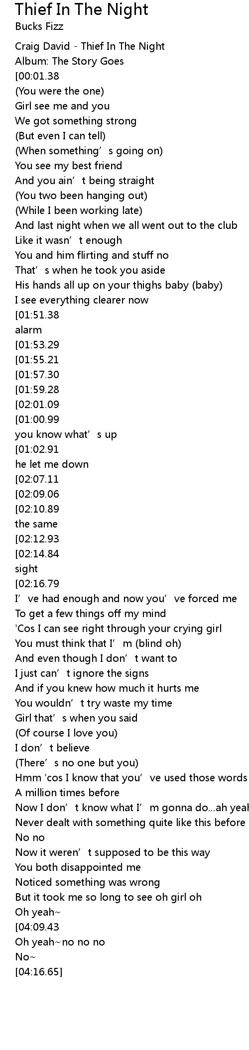 | [00:00.00] | Craig David - Thief In The Night |