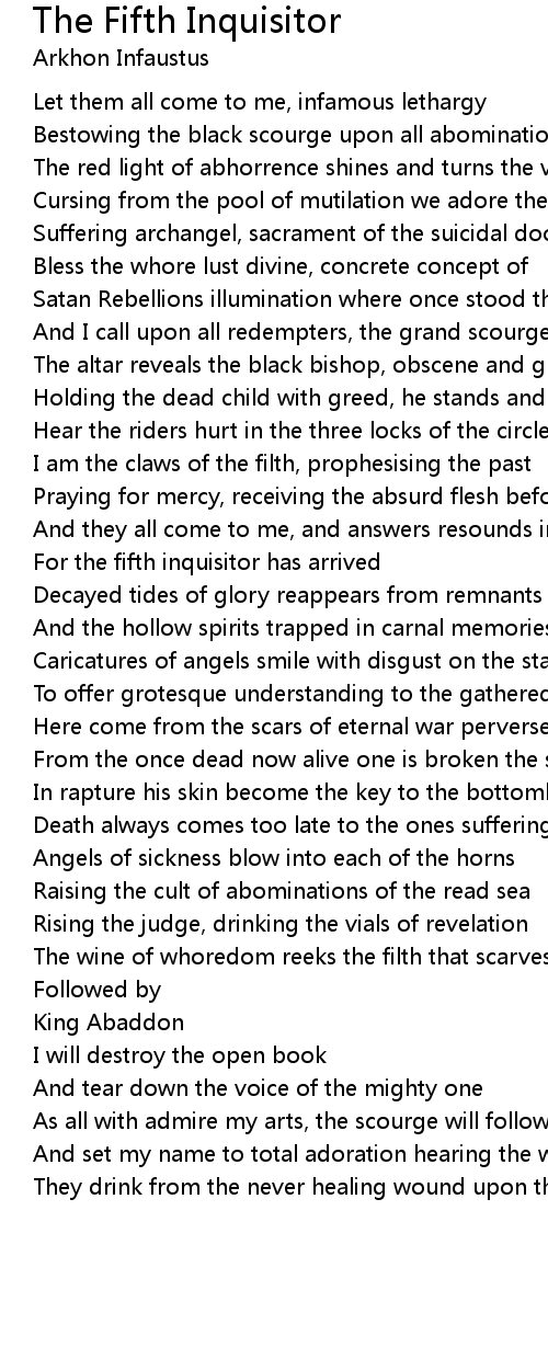 For the fifth inquisitor has arrived |