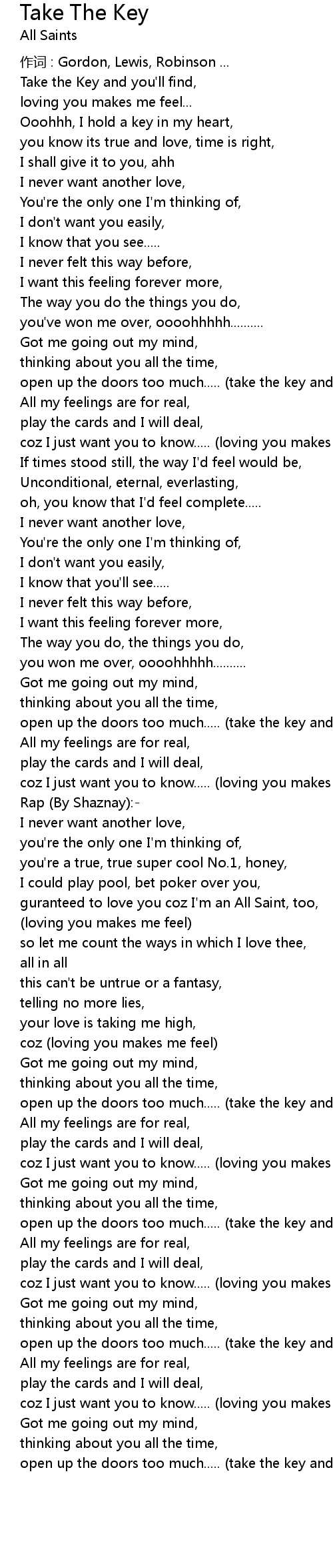 | Song | Take The Key |