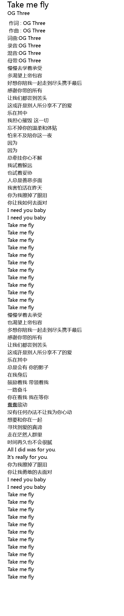 | [00:03.12] | 词曲:OG Three |