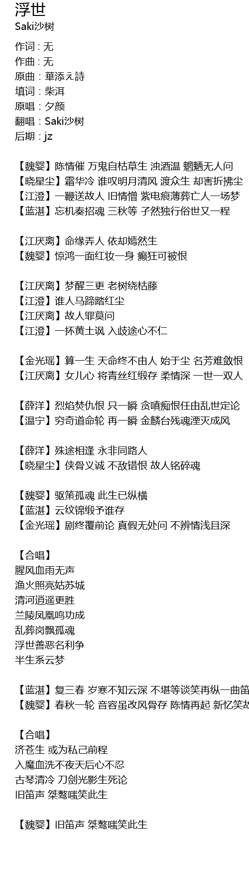 | 翻唱:Saki沙树 | |