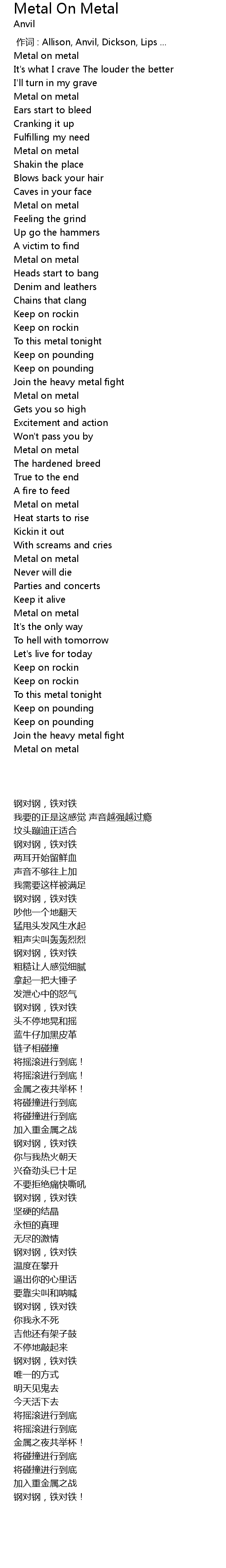 | [00:00.00] | 作词 : Allison, Anvil, Dickson, Lips ... |