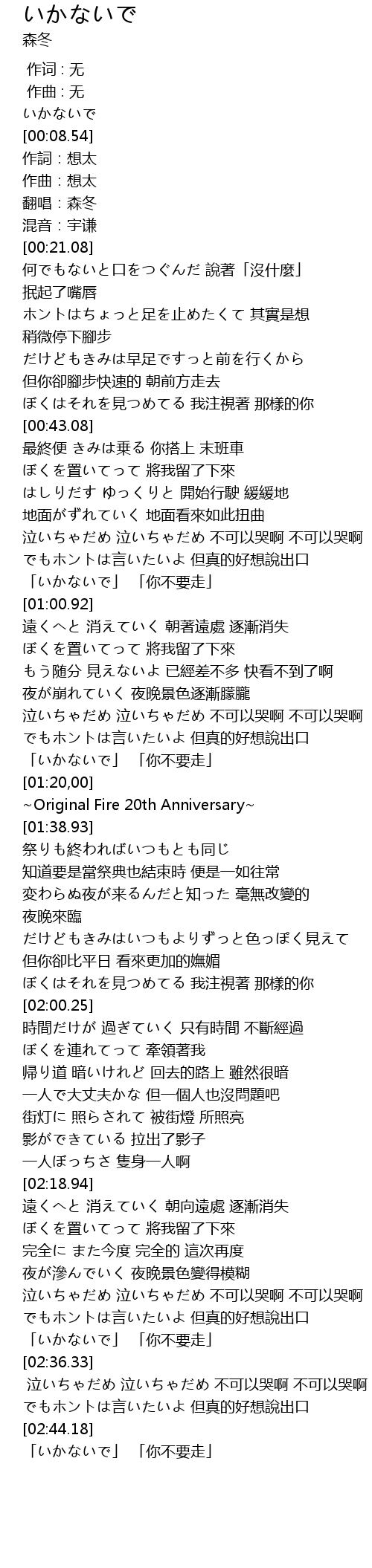 | [01:21.36] | ~Original Fire 20th Anniversary~ |