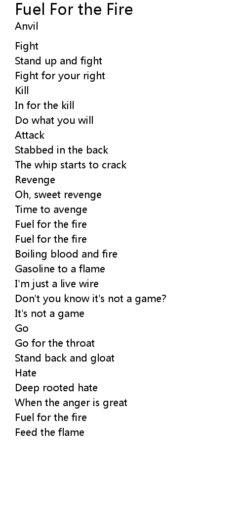 | Song | Fuel For the Fire |