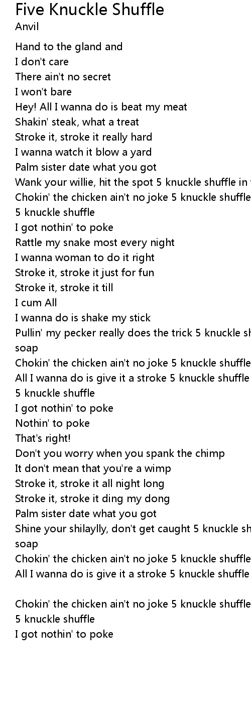 All I wanna do is give it a stroke 5 knuckle shuffle in the shower with the soap 5 knuckle shuffle |