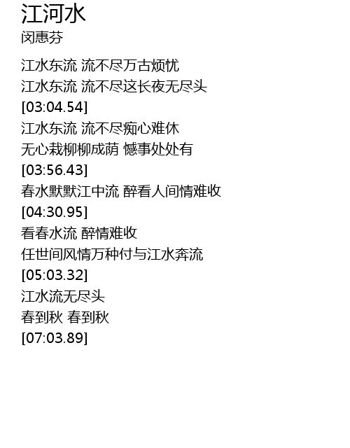 | [06:33.71] | 江水流无尽头 |