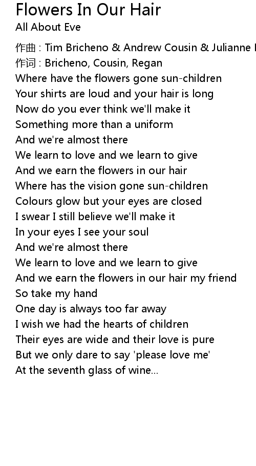 | And we earn the flowers in our hair | |