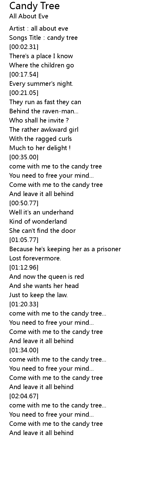 | [02:06.47] | come with me to the candy tree... |