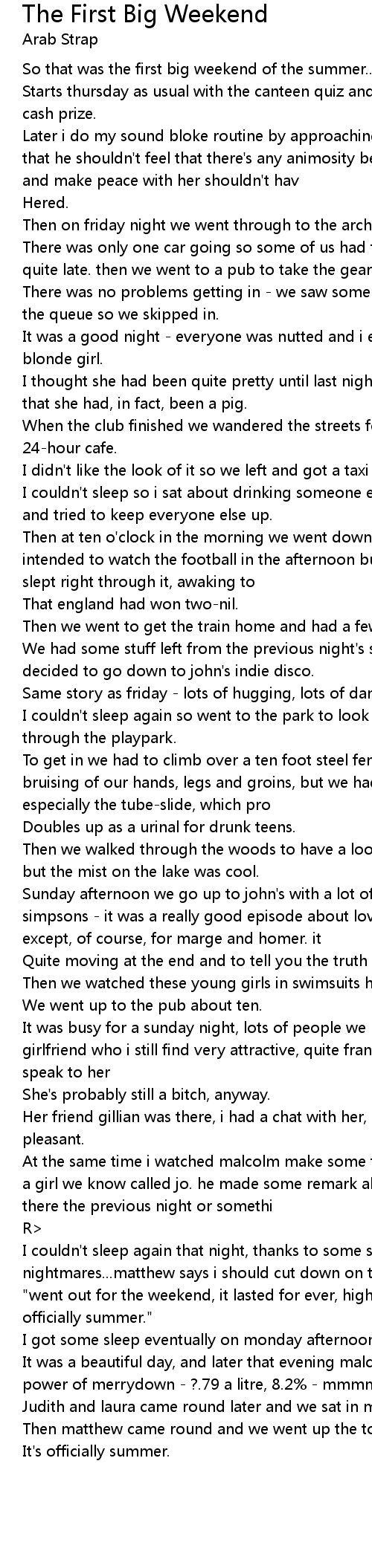 "went out for the weekend, it lasted for ever, high with our friends it's officially summer." |