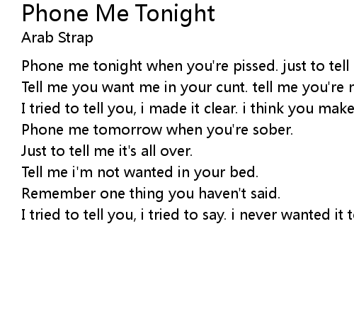 Phone me tonight when you're pissed. just to tell me that i'm missed.
