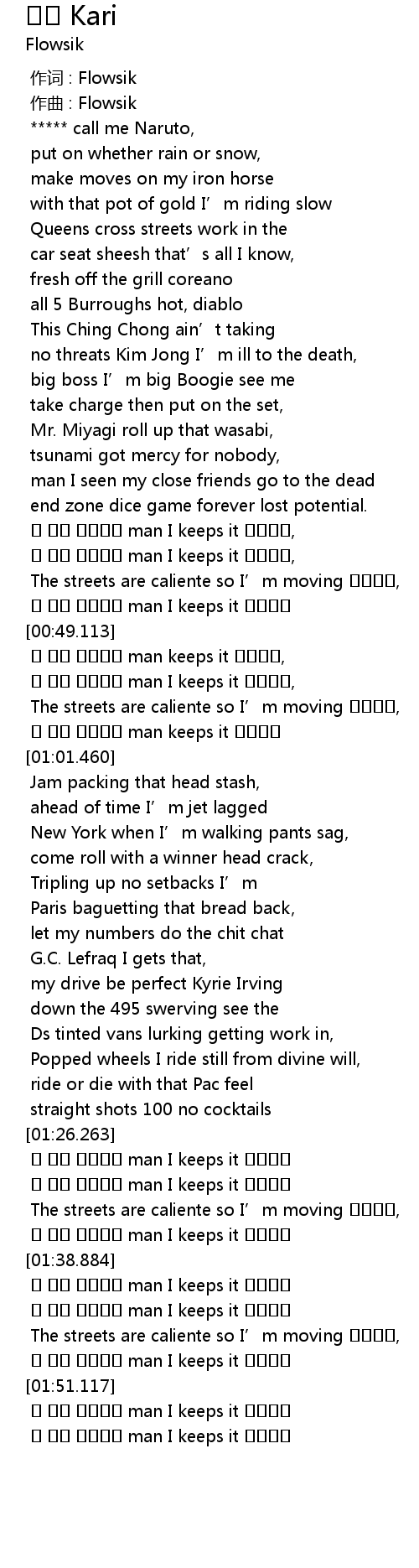 | [02:00.587] | 이 구역 나와바리 man I keeps it 까리까리 |