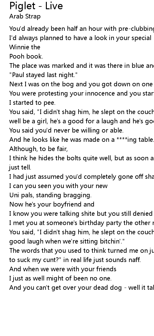 You said, "I didn't shag him, he slept on the couch in the kitchen. He might as well be a girl, he's a good for a laugh and he's good for bitchin'." |