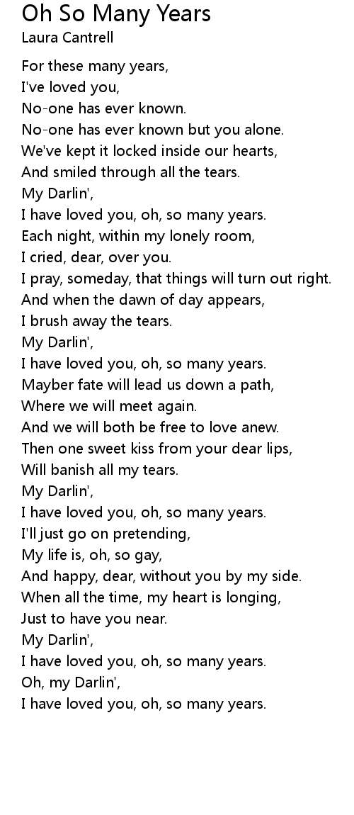 I have loved you, oh, so many years. |