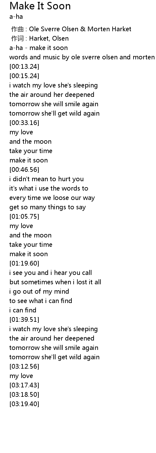 | [00:00.00] | a-ha - make it soon |