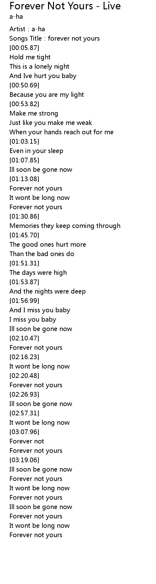 | [03:11.48] | Forever not yours |