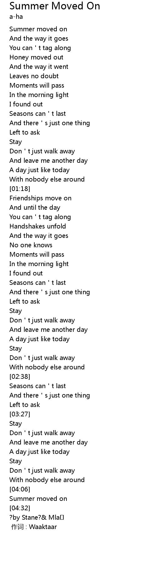 | [00:13] | Summer moved on |