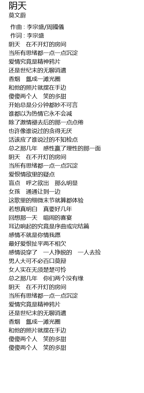 | Song | 阴天 |