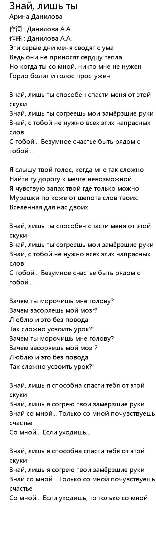 Знай, лишь ты согреешь мои замёрзшие руки |