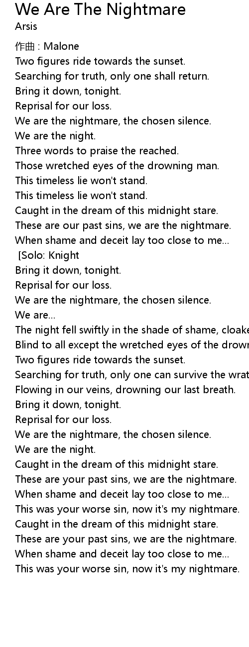 | This was your worse sin, now it' s my nightmare. Solo: Malone Solo: Knight | |