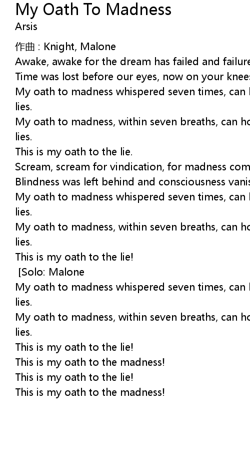 | My oath to madness whispered seven times, can hold the answer within all these lies. | |