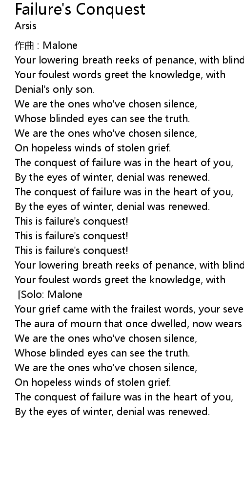 | Song | Failure's Conquest |