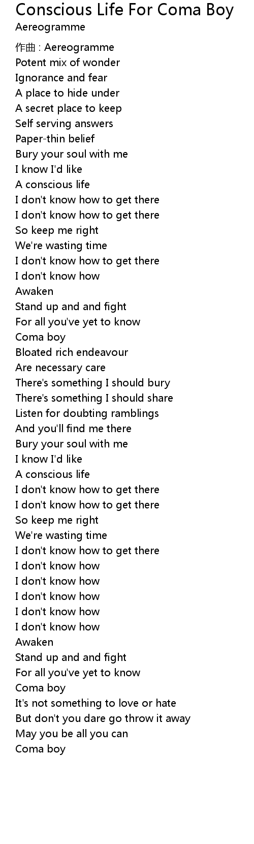 | Song | Conscious Life For Coma Boy |