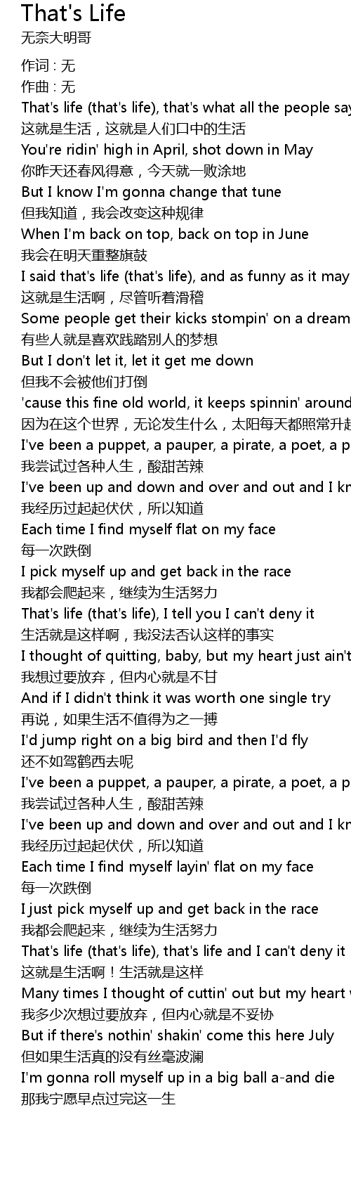 | That' s life that' s life, that' s what all the people say | |