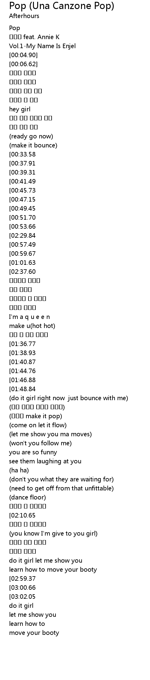 | [02:53.49][02:37.60][01:50.64][01:03.20] | (pop pop make it pop) |