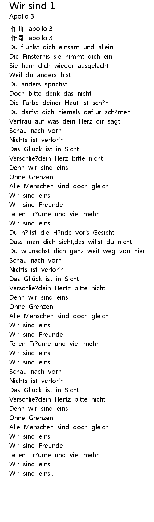| [03:05.00] | Wir sind eins |